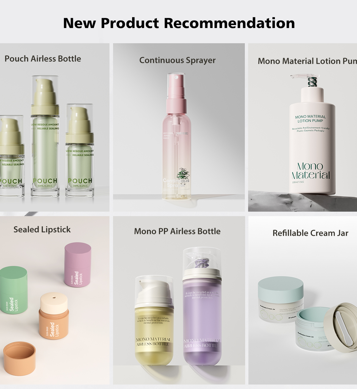 Основные продукты:Лосьон для насоса, мелкий распылитель тумана, безвоздушная бутылка, бутылка для лосьона, банка для крема